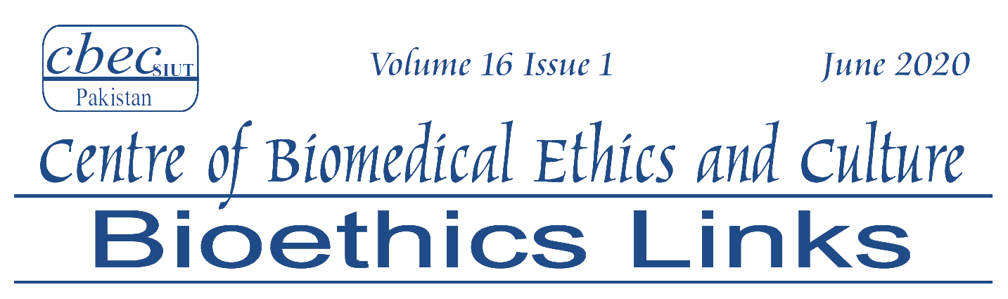 Where we are now, in June 2020, reams have been written about COVID-19 - but the effects of the pandemic are still unfolding. We have yet to fully understand its long term impact on the social structures within which we are embedded but the changes in our patterns of interaction and communication are likely to linger. Among the initial fallouts has been our inability to bring out the printed edition of Bioethics Links; for the first time, our newsletter is available solely in a virtual format. Ms. Anika Khan took the lead in this laborious and oft-times frustrating task. We would also like to thank Mr. Aamir Shehzad, CBEC IT Officer, who made this virtual version a reality.